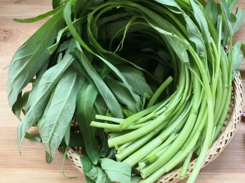 1、空心菜洗干净,分摘成叶子放一个篮沥干,梗放另一个篮沥干