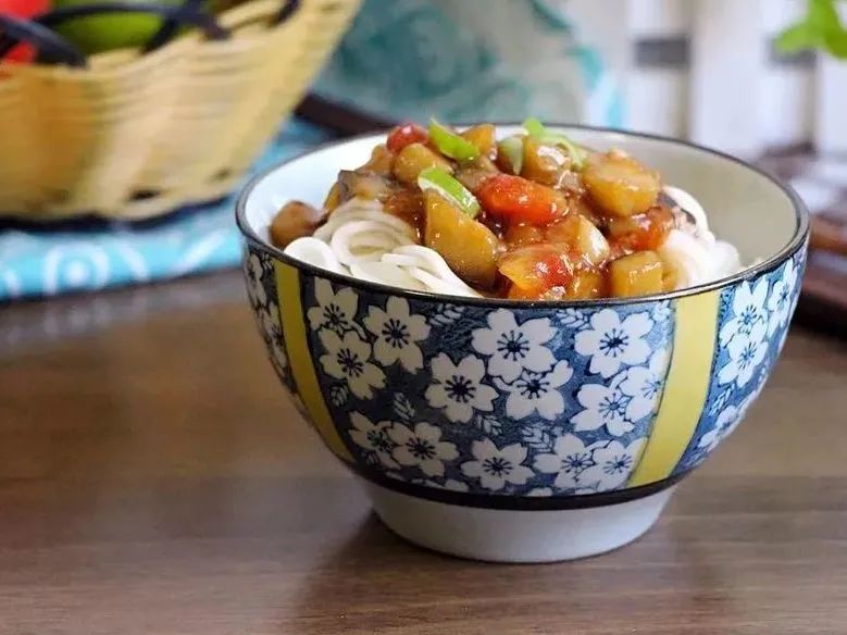 8、面条浇上西红柿茄丁卤即可,清爽开胃