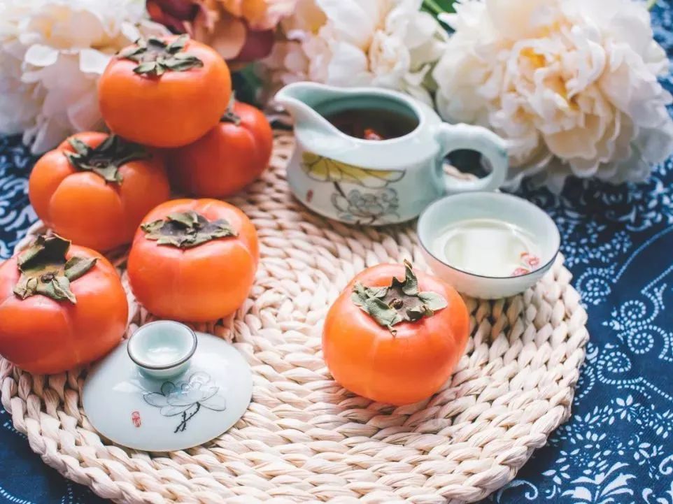 在乡间田野,柿子树的叶子落光了,红红的柿子高挂在枝头。吃柿子不但可以御寒保暖,还可补筋骨呢。